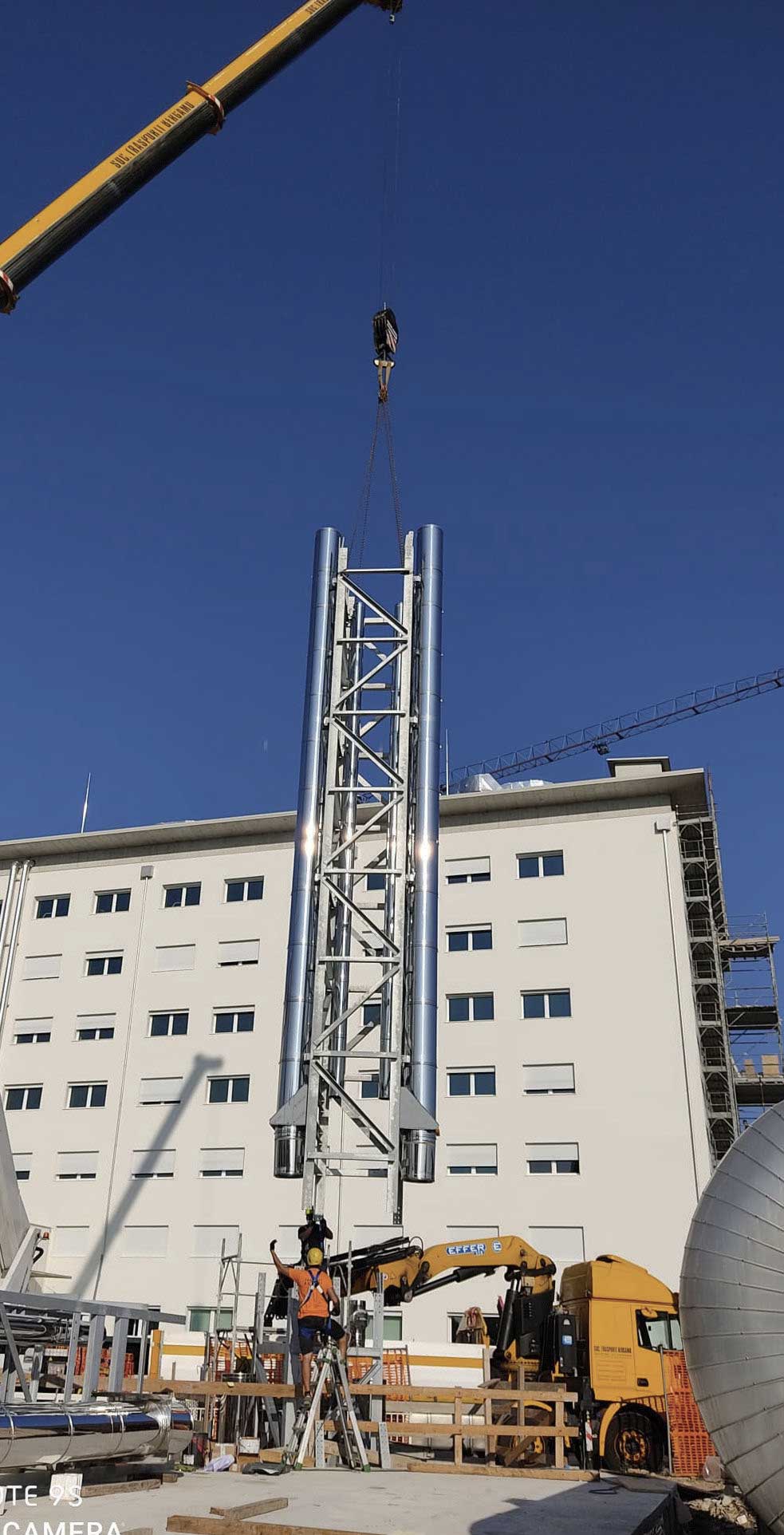 •Nr. 2 – Canne fumarie in acciaio inox Aisi 316L doppia parete Ø 200, isolamento termico 50 mm, lunghezza 45 mt a servizio di cogeneratori.