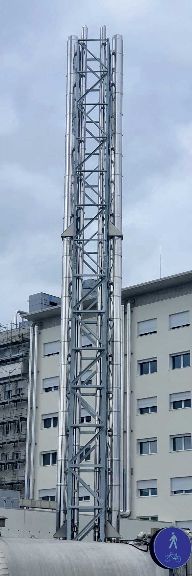 •Nr. 2 – Canne fumarie in acciaio inox Aisi 316L doppia parete Ø 450, isolamento termico 25 mm, lunghezza 50 mt a servizio di caldaie a condensazione.