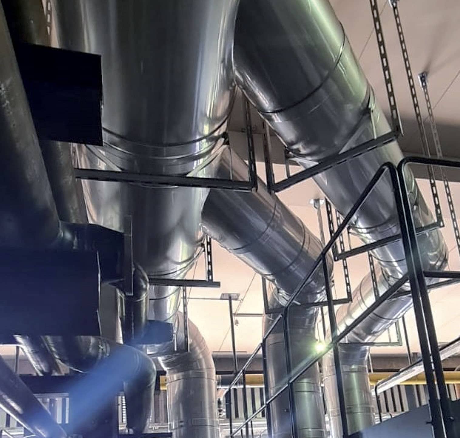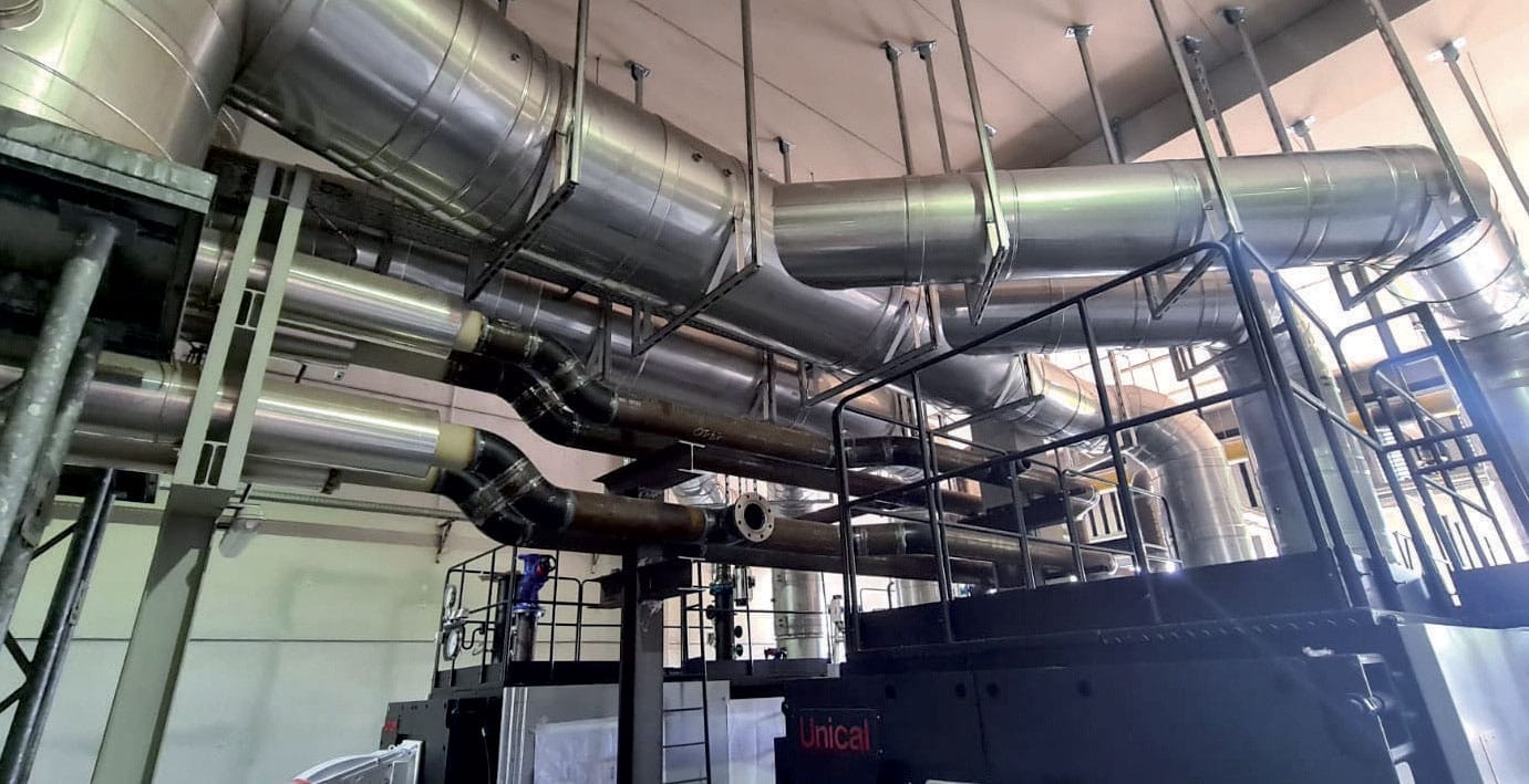 •Piping in acciaio inox Aisi 316L spessore 3 mm doppia parete Ø 900, isolamento termico 50 mm, lunghezza 12 mt a servizio di caldaie a condensazione.